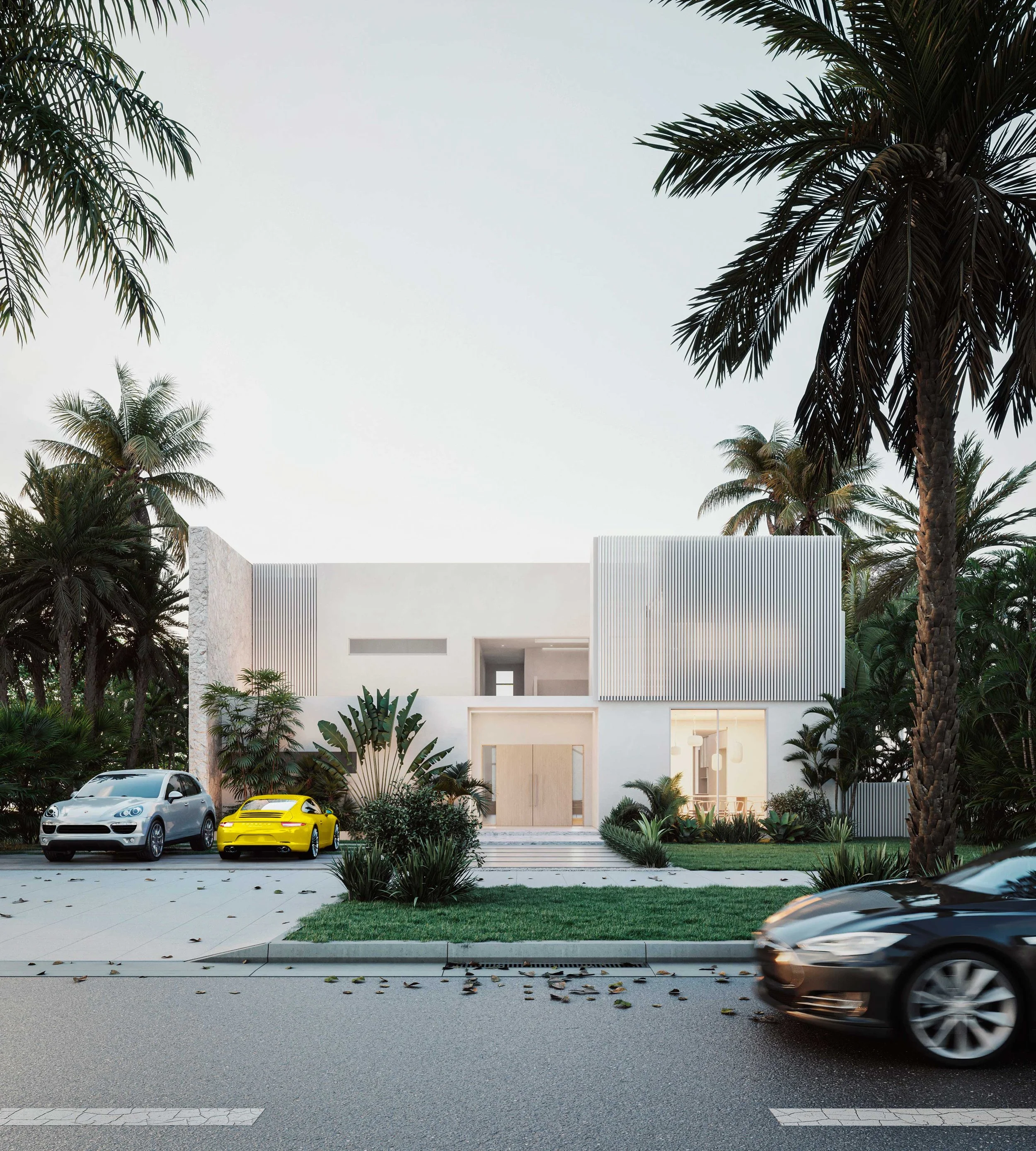 The design brings a garden-style concept with screens, acute angles, delta wings, mosaic tile, and seaside materials. The ledges above windows created shade and help to keep interiors cool while protecting from the subtropical temperatures.