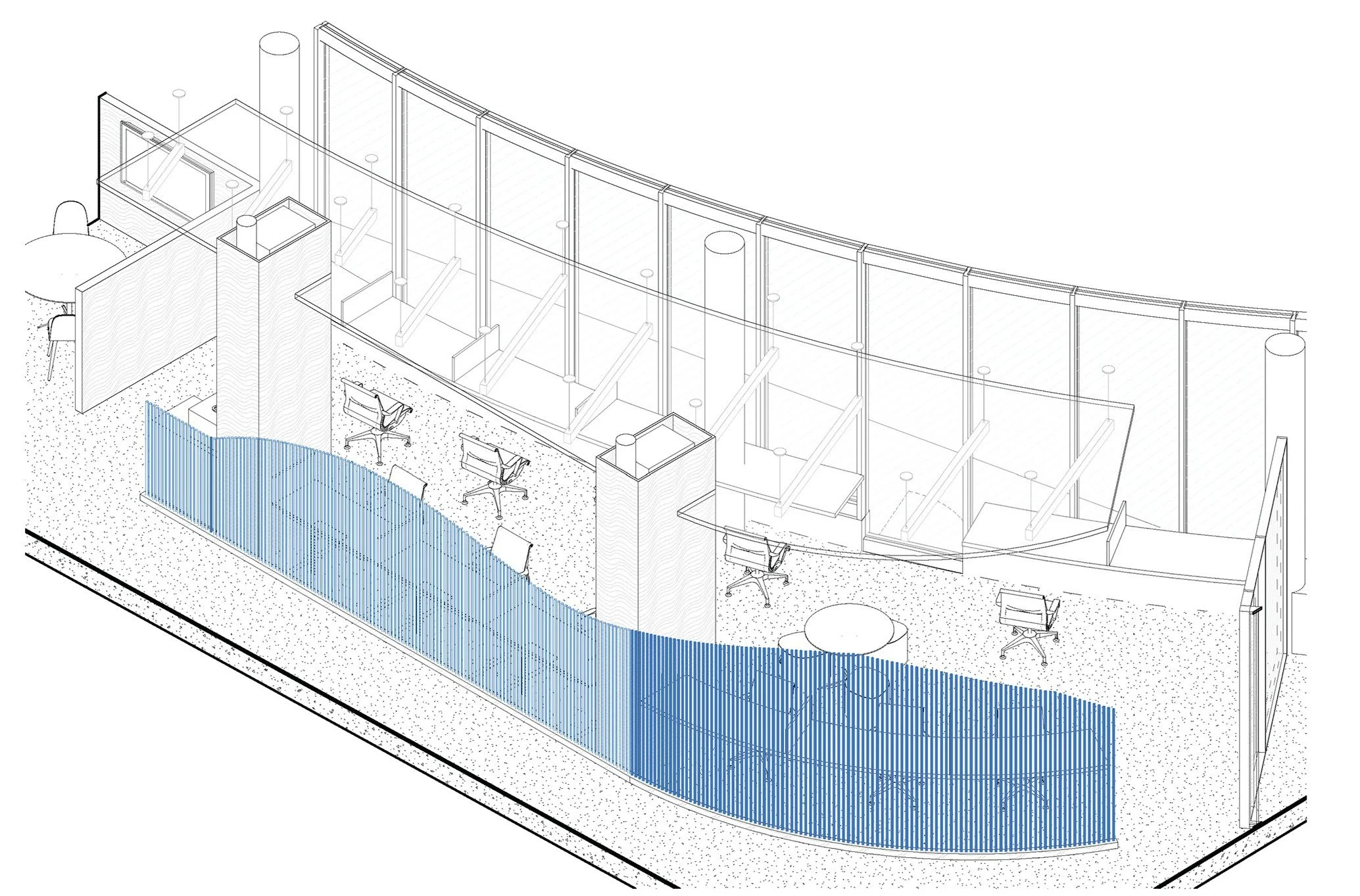 A multi-concept food and beverage hospitality group based in Miami, Breakwater Hospitality Group is most known for their signature venue, The Wharf. With multiple concepts and locations, and more in development, the team was in need of an inspiring corporate headquarters, team meeting space, and hospitality laboratory. Taking inspiration from Breakwater’s wave logo, the floorplan was designed to encourage creative synergy among the team and is represented in the architectural elements throughout. Inside, visitors first encounter a welcome lounge and bar area, immediately setting the tone for the hospitality Breakwater shows all guests. The bar is also a laboratory where the group’s cocktail artists can experiment and invent new concoctions and craft menu development for their many F&B concepts and private events. Follow the wave-like louvers as room dividers to collaborative workstations, flexible meeting rooms, and moments in between where people can connect and engage in impromptu ideation and collaboration. The floor-to-ceiling windows not only allow for views to the water and shoreline, but also allow for ample natural light to bathe the entire interior space.