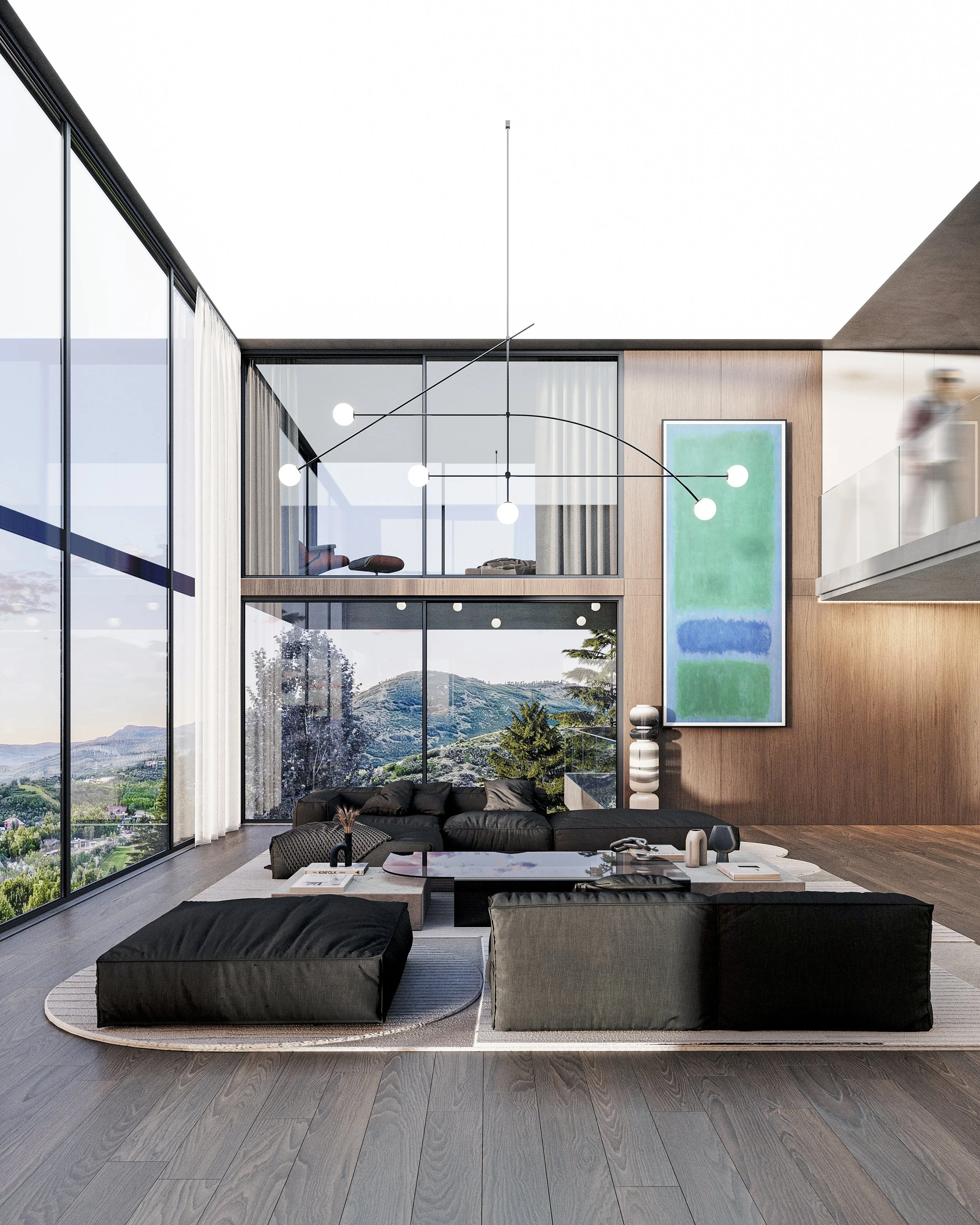 The concept for this luxury rental flourishes from the responsiveness and attraction to the wild nature and stunning landscape that Colorado offers. This connection is a portrayal of the essential and simple ingredients of the state landscape; the boulder rock formations, mountain sedimentation strata, and the volumes of snow-covered mountains during the winter playing with light and shadow