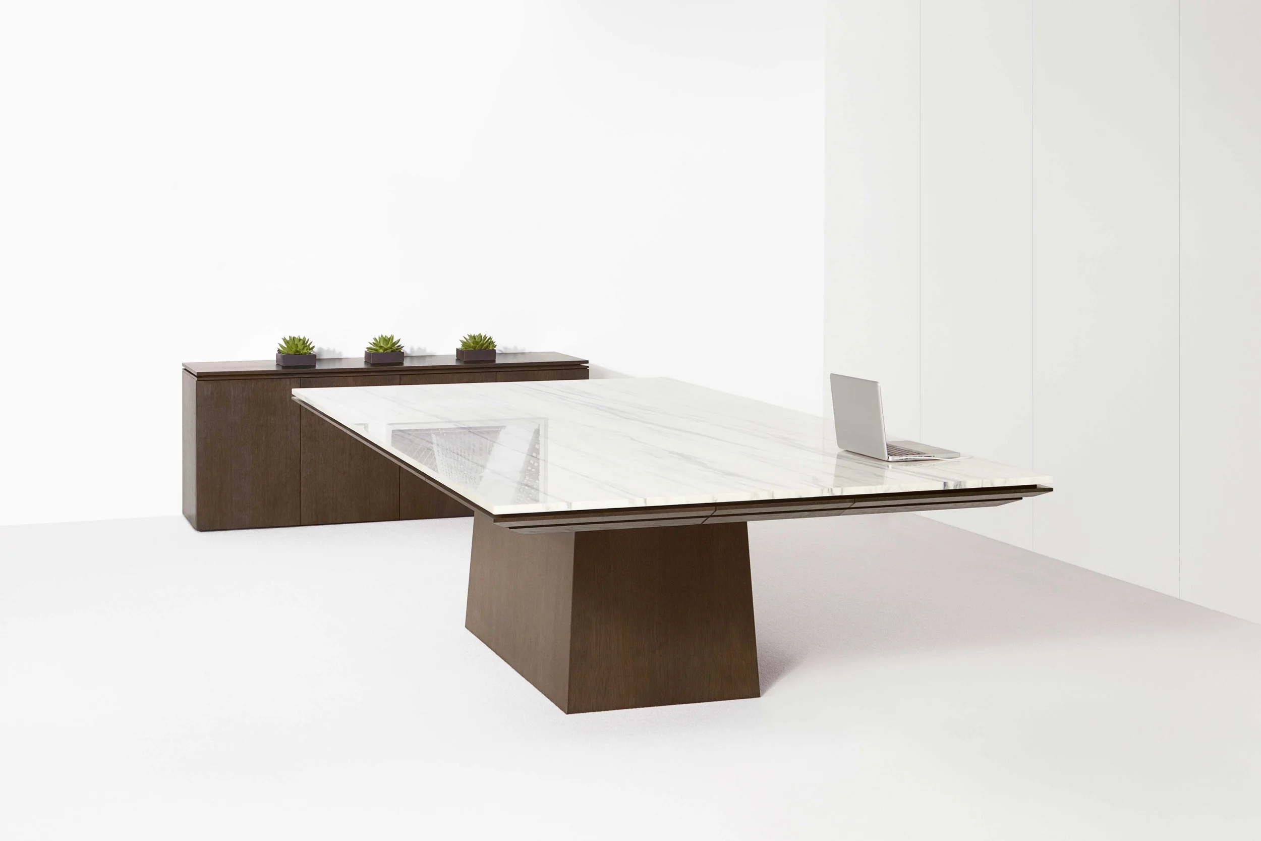 Mesa was conceived by observing meeting behaviors and analyzing conference table surface productivity. Mesa integrates sleek, seamless technology solutions that maximize workspace for conferencing. Taking away no original function and merely making it more efficient, Mesa is completely customizable in numerous options for table shapes, sizes, bases, colors, and materials. Allowing technology to be managed through hidden drawers, we are proud not only of this design but the essential process that went into creating this carefully engineered product.