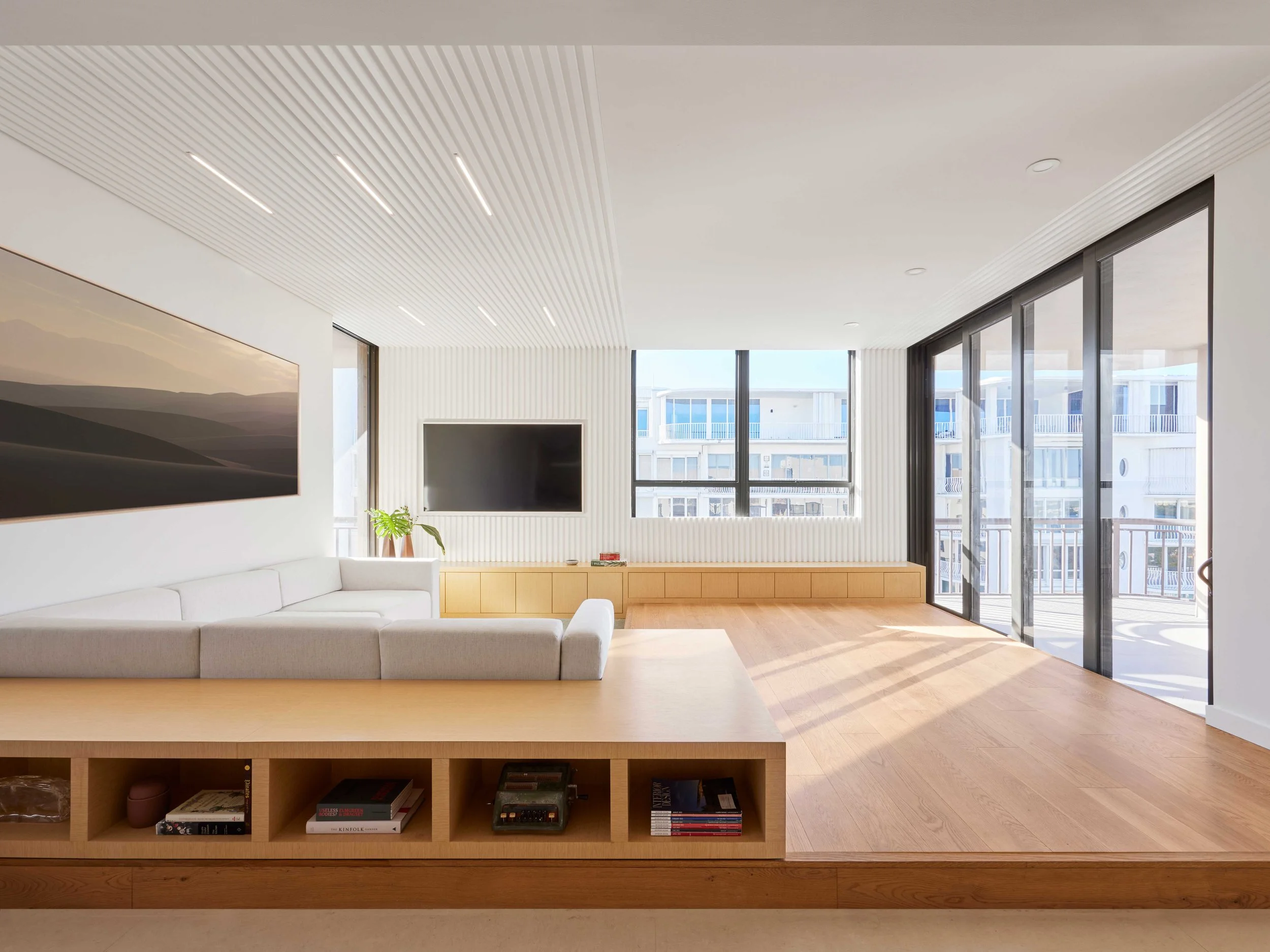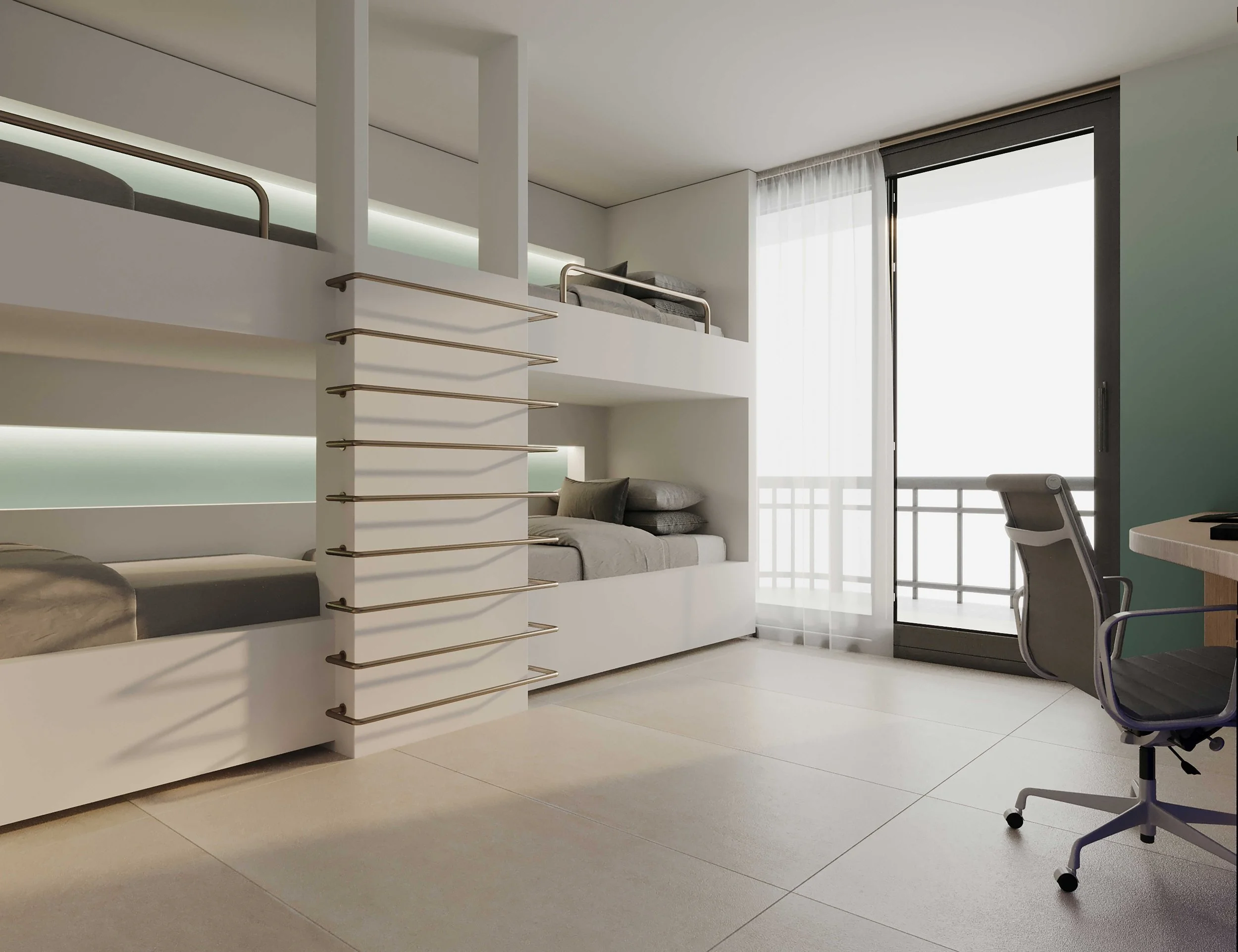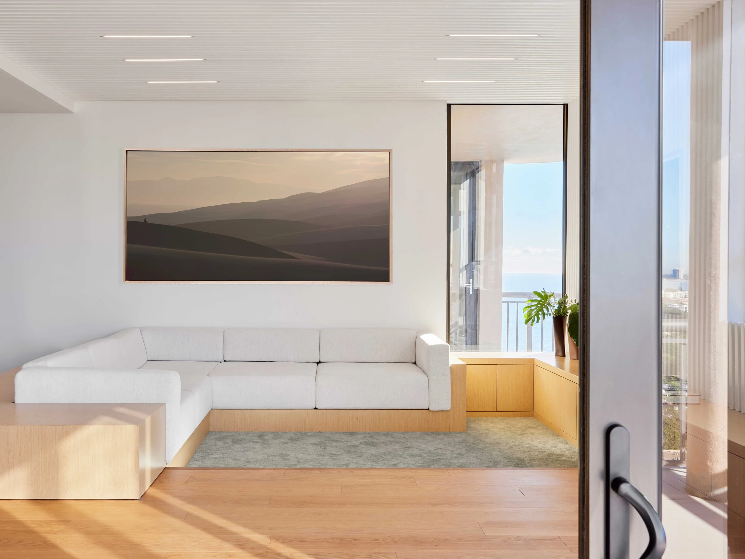 Enter Penthouse 6 in Bal Harbour, Miami, Florida, and experience a true feeling of seaside tranquility. PH6 aims to create a warm space fueled by a sense of temporal dimensions of volumes and lines. The design of this vacation home is radical in the emphasis on the design process rather than the use of products. Inspired by Bal Harbour waters, the concept envisions a coastal environment, using finishes and materials of natural origin such as white oak wood veneer, terrazzo, and seafoam colored accents.