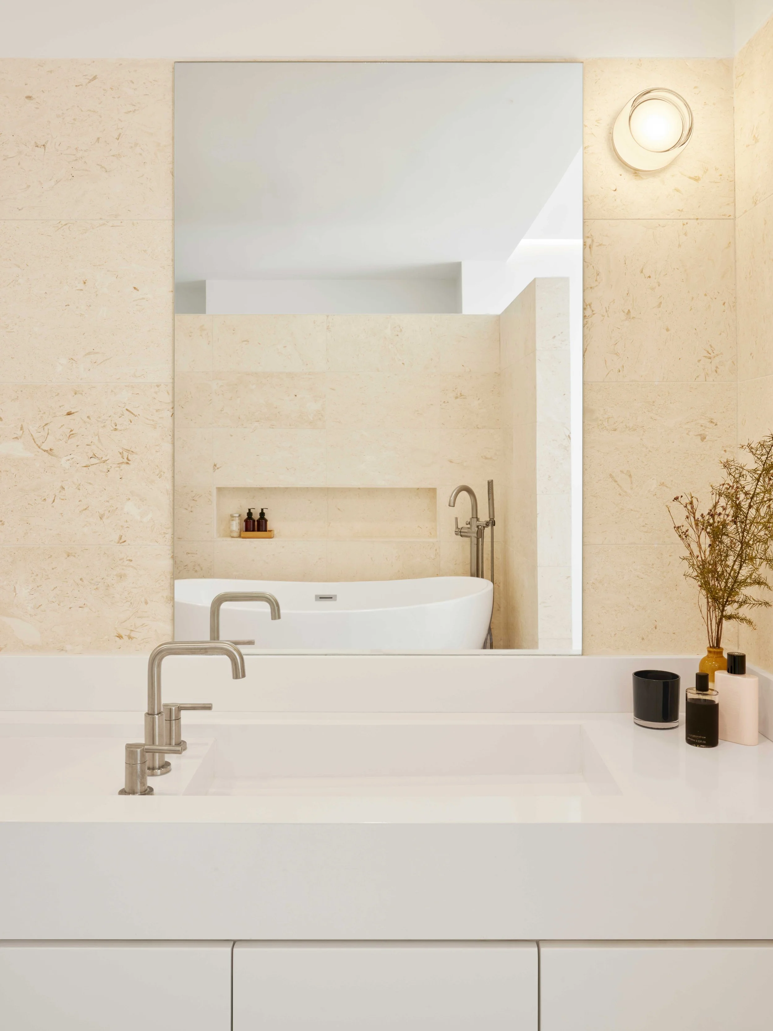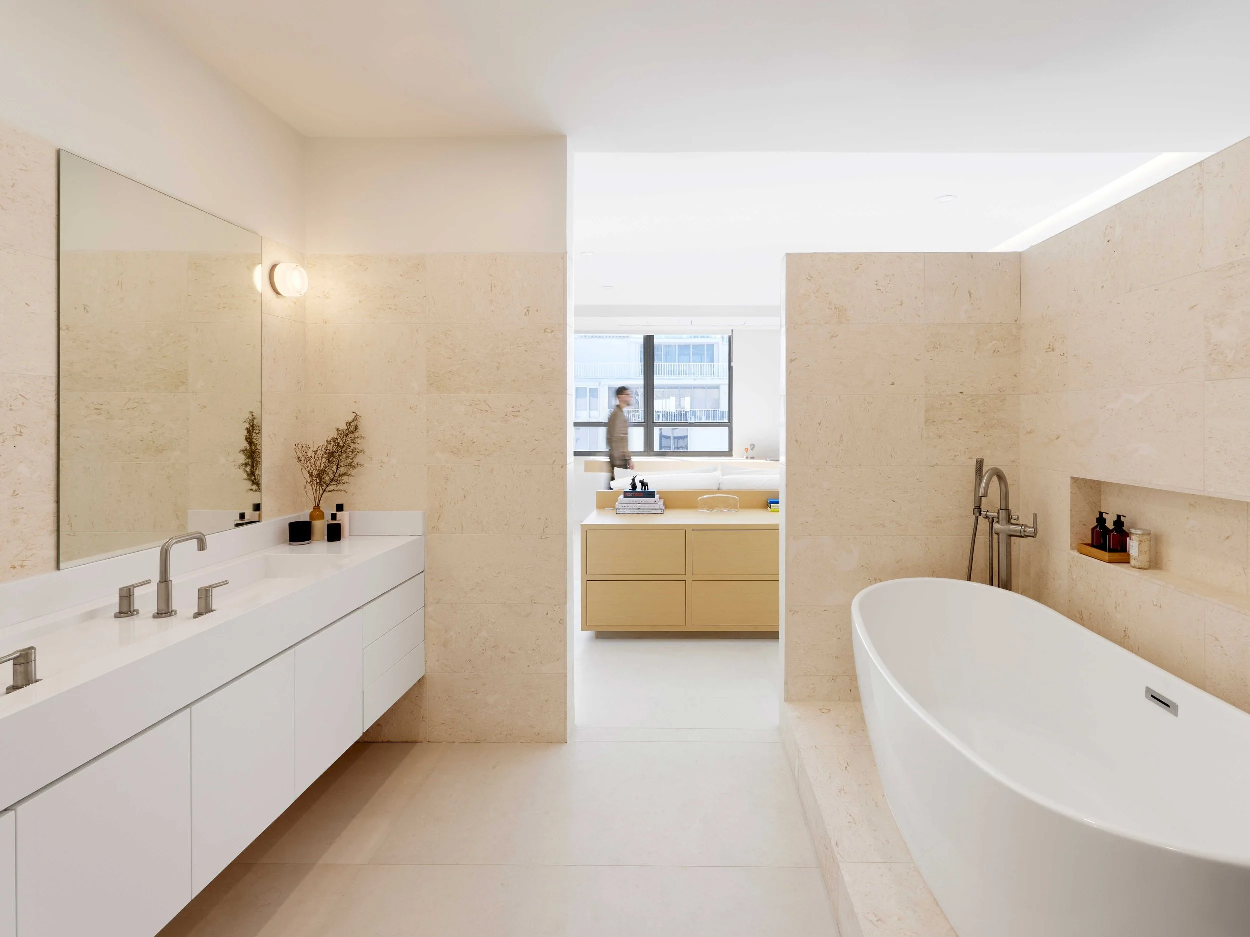 The attention to craftsmanship and detail is felt in every room, and the design purposefully uses only a small selection of materials, minimizing the environmental footprint while maximizing the full use of each component, often in innovative applications to mitigate material waste.